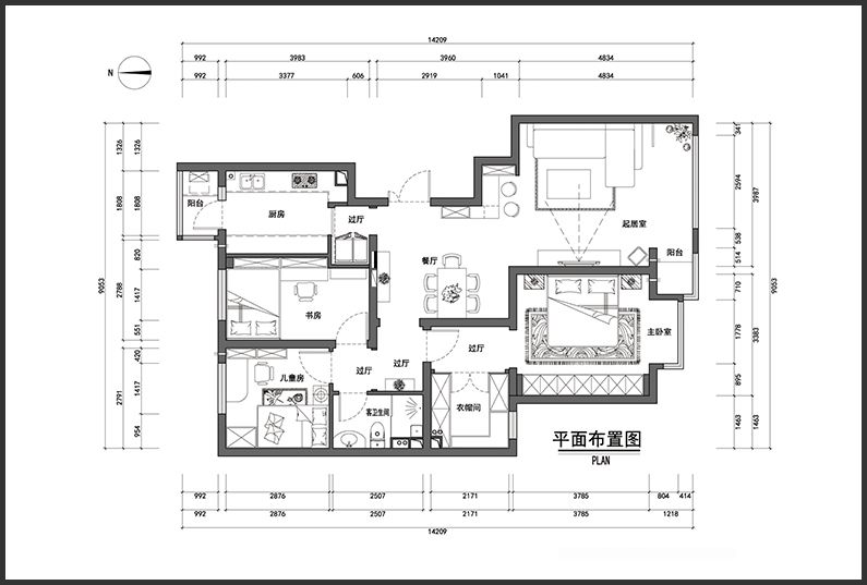 客戶是三口之家的改善性住宅,需要較強(qiáng)的中式經(jīng)典韻味,以及注重學(xué)習(xí)閱讀空間。