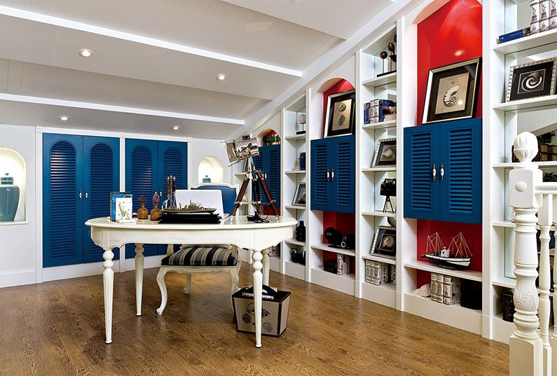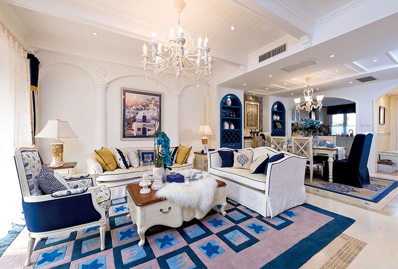 陽光般純凈的白色,讓人身心舒爽;靜謐海水般優(yōu)雅高貴的寶石蘭,讓人身、心安逸放松。生活在忙碌都市的人們,很向往無拘無束自然悠閑的生活。該案例放棄了傳統(tǒng)的審美情趣,為居住著打造一個悠閑、放松的異域風情。