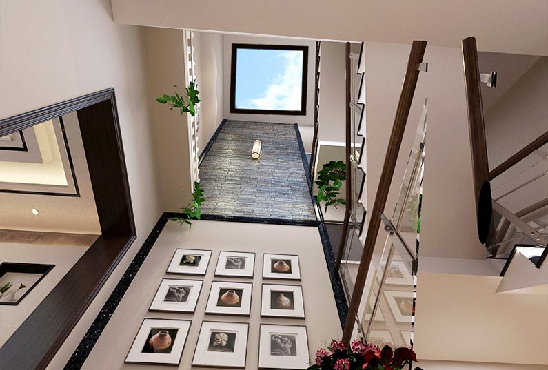 3、樓梯間:采用乳膠漆和文化石兩種材質(zhì)相結合,新穎且不突兀。