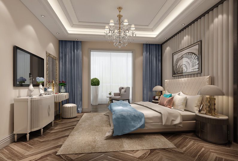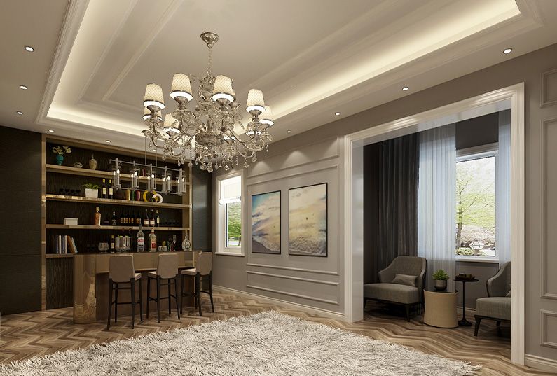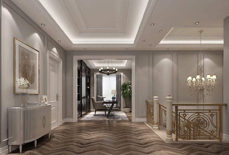 簡約俐落的質材鋪敘與敞明大方的格局尺度,是輕奢風定調的設計居宅中,不可或缺的重要元素。在案例中,陳設藝術品及金屬線條材質來營造大氣、自然、輕奢的裝飾美學氛圍。墻面、地面、家具陳設等均以簡潔的造型、精細的工藝為其特征,強調品質感和細節(jié)處理。在色彩搭配方面以暖色為主,溫馨的客桌花束、明黃色的搭毯、直觀大氣的金屬材質,帶著淡淡的隨意,隨著輕輕的希冀讓人感受到的是空間彌漫的溫馨與舒暢。