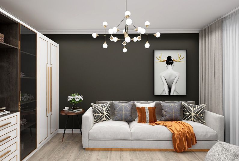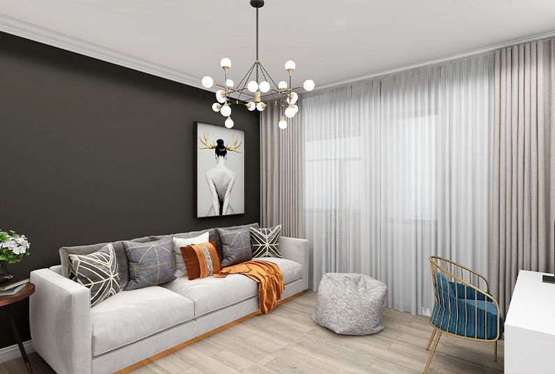 本案是一套美式簡約家居,客廳的設(shè)計簡約大氣、線條洗練,淡色系墻面、天花板、沙發(fā)與深色系的茶幾、墻紙相得益彰,賦予空間平衡之美 ;摒棄一切煩瑣和奢華,去掉零碎的空間劃分,去掉堆砌的顏色和擺設(shè),去掉繁復(fù)設(shè)計的家具,但整個空間看起來,卻又簡而不凡。