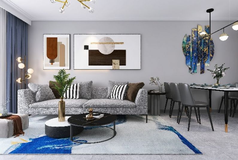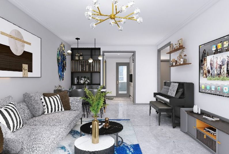 客廳比例比較寬敞,以便最大限度地利用空間。視覺空間看起來很寬敞,燈光效果也很好。客廳家具方面,建議采用灰色色調(diào)和金屬元素點(diǎn)綴,營造平靜而不失時(shí)尚氛圍。至于對(duì)于地板的裝飾,可以選擇感覺非常舒適的木制地板來裝飾,使整個(gè)客廳顯得簡單舒適,顯露出一種奢華感天然大理石也是在輕奢風(fēng)格中常常應(yīng)用,能讓家庭裝修更為奢華。
