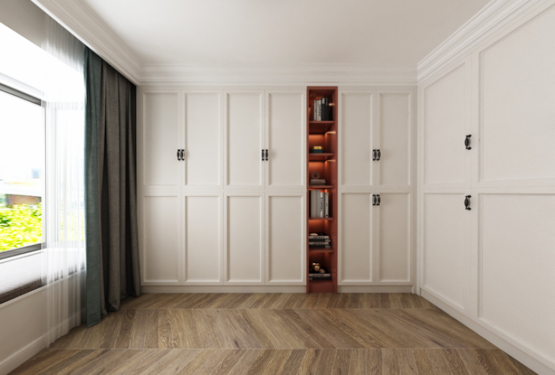 3、衣帽間設計不需過于華麗,通過簡單白色線條門板進行風格的把控;