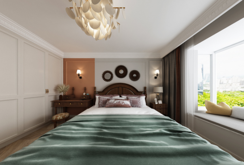 2、臥室整體以暖色調為主,通過局部亮色+壁燈點綴等細節(jié)設計實現(xiàn)溫馨、舒適、安靜的格調;