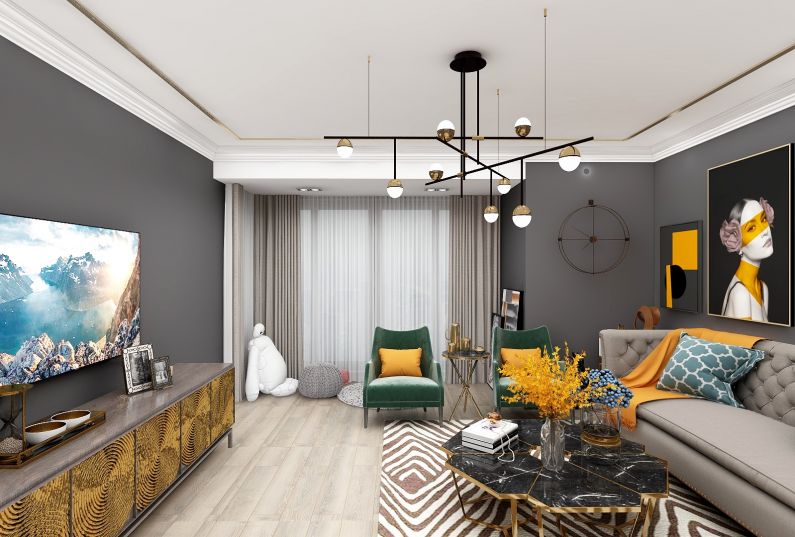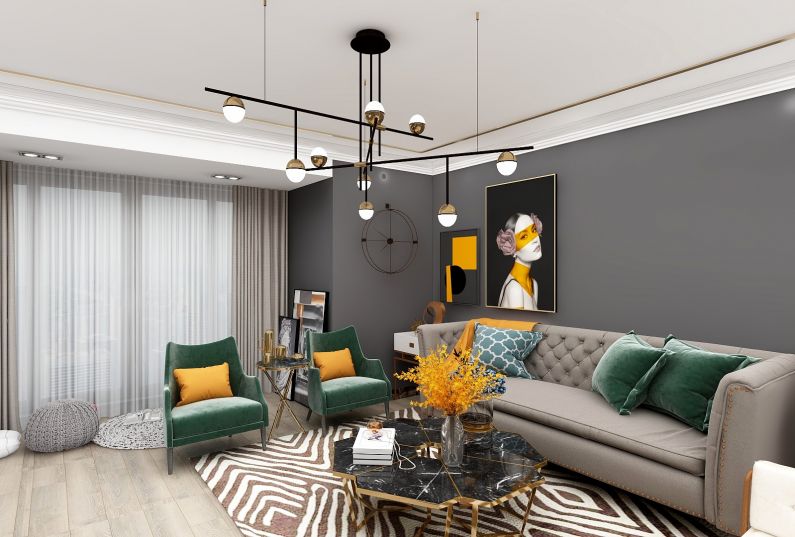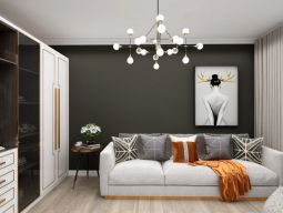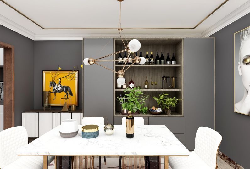 本案是一套美式簡(jiǎn)約家居,客廳的設(shè)計(jì)簡(jiǎn)約大氣、線條洗練,淡色系墻面、天花板、沙發(fā)與深色系的茶幾、墻紙相得益彰,賦予空間平衡之美 ;摒棄一切煩瑣和奢華,去掉零碎的空間劃分,去掉堆砌的顏色和擺設(shè),去掉繁復(fù)設(shè)計(jì)的家具,但整個(gè)空間看起來(lái),卻又簡(jiǎn)而不凡。