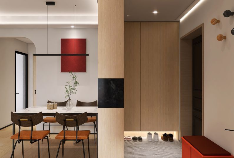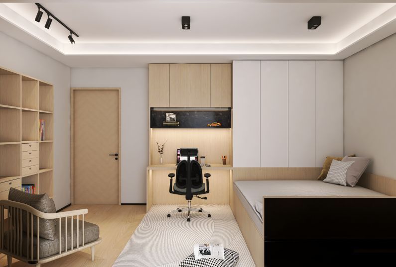 空間以木色為主色調(diào)、點(diǎn)綴黑色,增加空間的層次感。簡(jiǎn)約的造型設(shè)計(jì),搭配舒適的家具,呈現(xiàn)出簡(jiǎn)潔明快自然的居住空間。