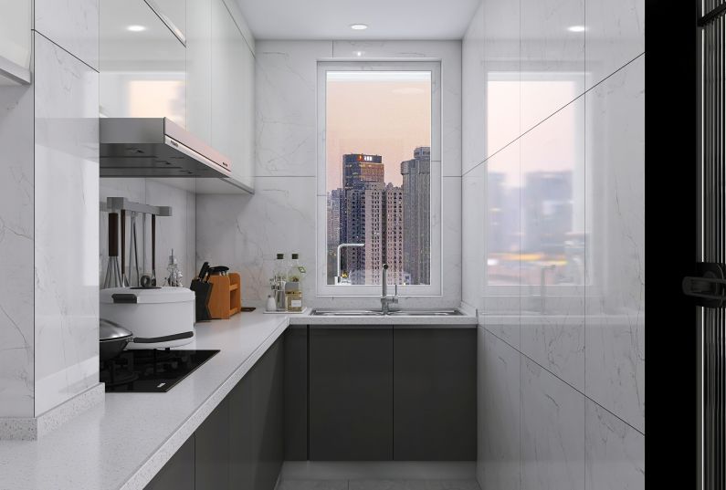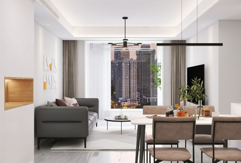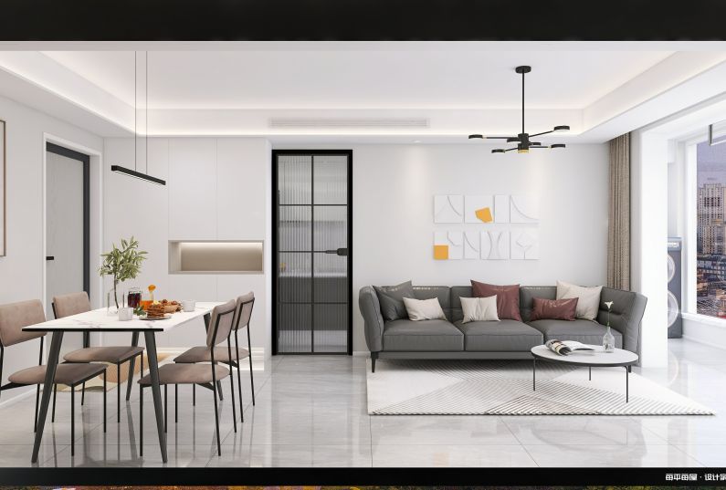 整體空間以白、灰,在主基調(diào),搭配現(xiàn)代風(fēng)格家具,沒有復(fù)雜的裝飾造型,使得整體空間清爽、干凈、整潔。
