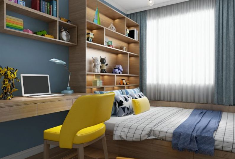 臥室根據(jù)不同居住人口的生活習(xí)慣 分別做了榻榻米和獨立床 榻榻米增加更多的儲物空間 老人房需要冰箱的習(xí)慣 保留下來