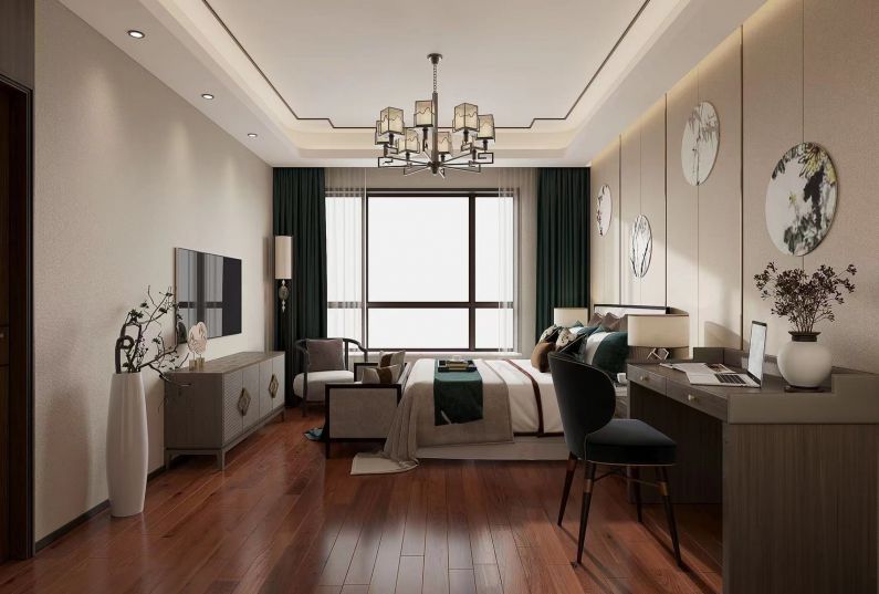 這個設計風格為中式,添加了一些現(xiàn)代的元素,讓古典中式看起來不那么呆板,