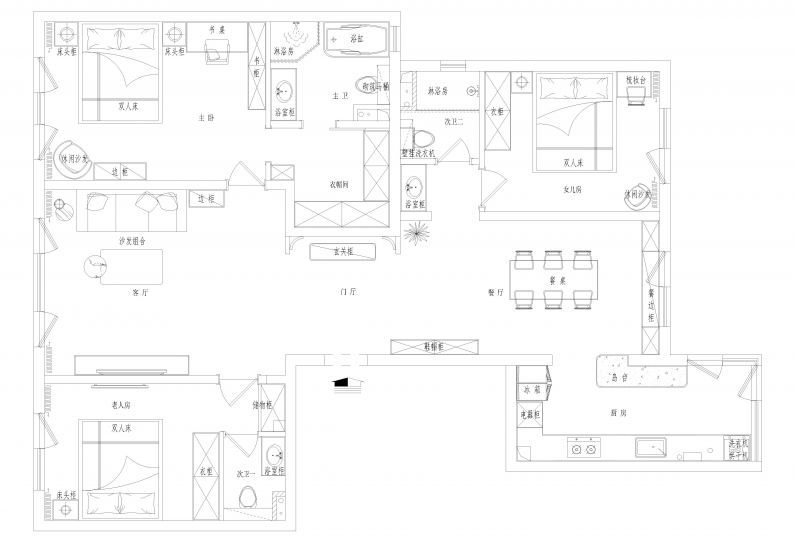 戶型上沒做過多的改動,在主要格局不變的情況下,在平面布置上考慮細節(jié)較多。