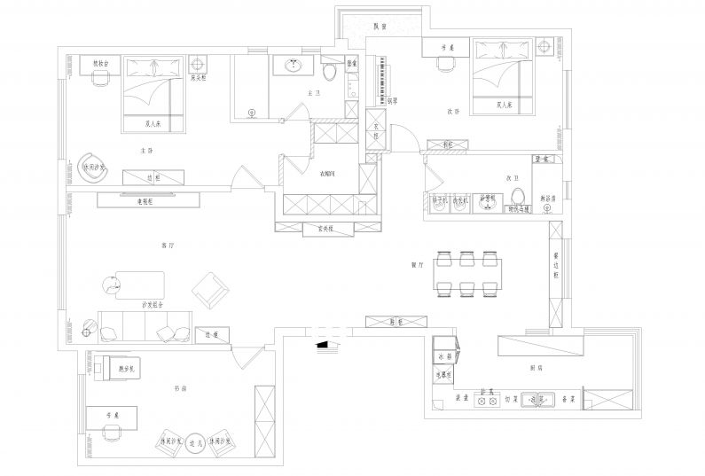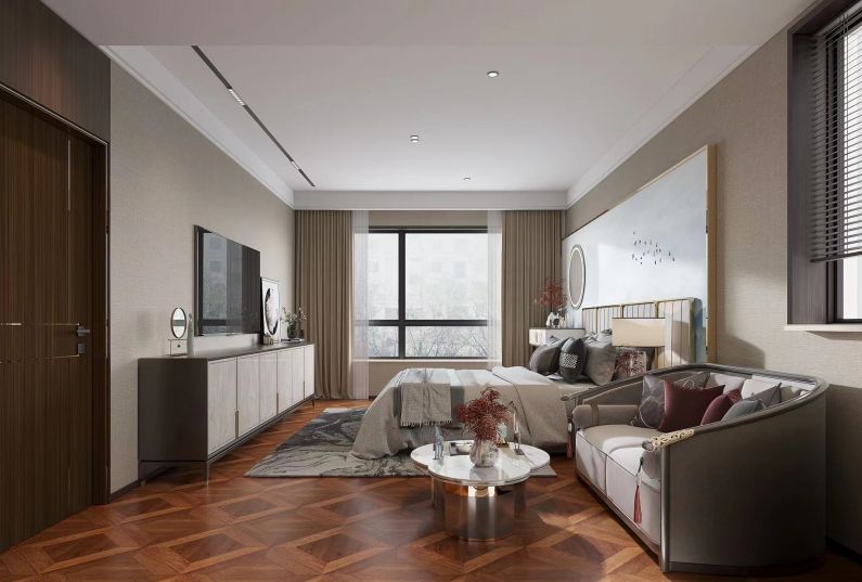 設(shè)計(jì)風(fēng)格是現(xiàn)代中式,戶型上保留了兩個(gè)臥室。其中一個(gè)改造成書房兼多功能室。