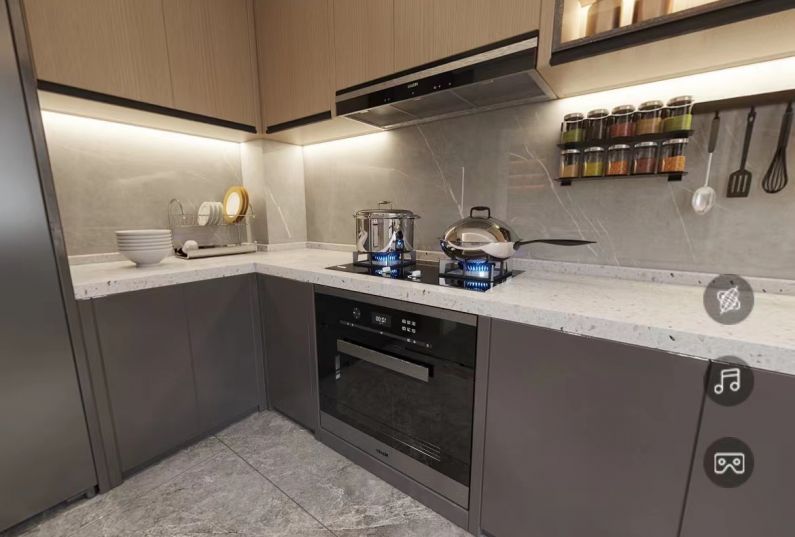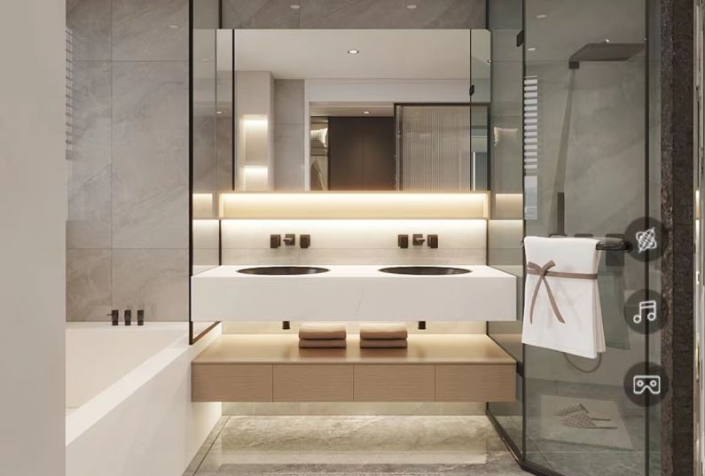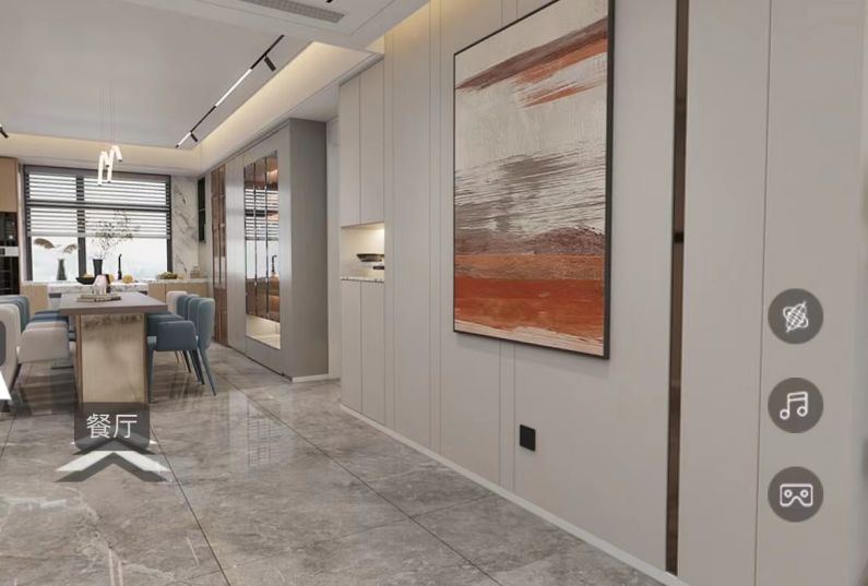 客廳電視墻做了大面積巖板裝飾,把電視嵌入進(jìn)去,融合一體,既能裝飾儲(chǔ)物又能看電視,實(shí)現(xiàn)多功能一體化,加了一圈的燈光,利用光源,使空間明亮,裝飾效果更強(qiáng),在這個(gè)空間中的使用,不僅反映出現(xiàn)代人追求多姿多彩的居住要求,更迎合了現(xiàn)代簡約設(shè)計(jì)風(fēng)格,美觀實(shí)用。
