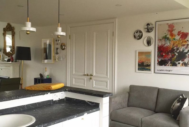 作品呈現(xiàn)簡約的設(shè)計更貼近北歐風(fēng)的感覺,而且會有很多可愛明亮的元素在里面,搭配上也是更多和黃銅質(zhì)地和顏色相結(jié)合,而鏡子則是設(shè)計里不會缺少的亮點。不乏西班牙的達利作品(仿品)、日本的草間彌生南瓜……屋主對現(xiàn)代藝術(shù)大師的推崇。