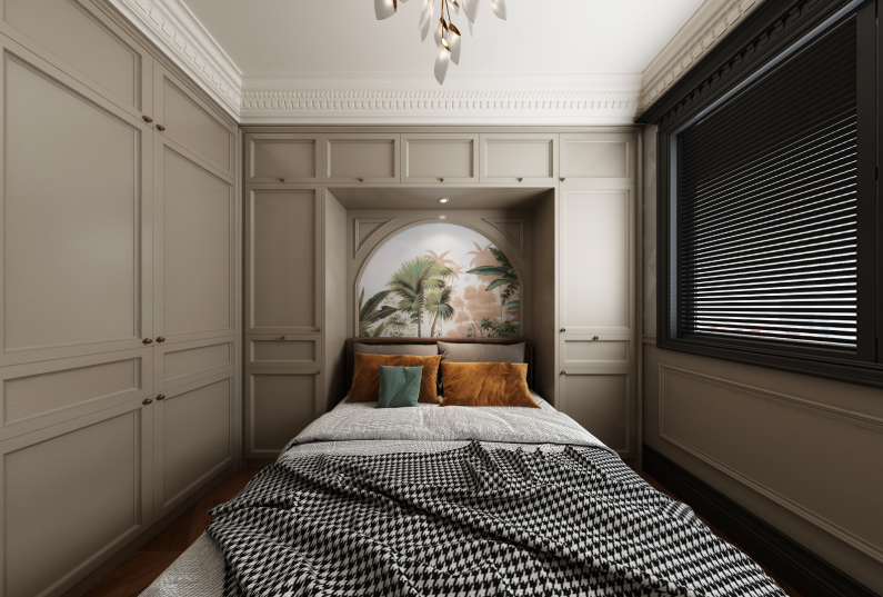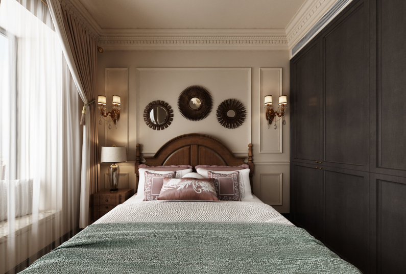 美式復(fù)古風(fēng)格的設(shè)計(jì),色調(diào)整體以沉穩(wěn)的咖色調(diào)為主,結(jié)合家具及配飾的亮色,使色調(diào)在沉穩(wěn)中跳脫,不至于顯得沉悶單調(diào)。在遵循美式風(fēng)格的基礎(chǔ)上借鑒其它的古典主義元素,溫馨的暖色調(diào),使得整體家居更加的舒適