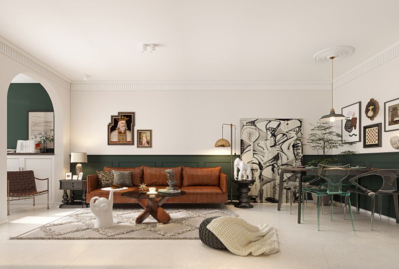 總體說明:今年退休的老夫婦 男主人熱愛藝術熱愛繪畫 家里很多作品 也有很多歷年出國游玩帶回的工藝品 和業(yè)主接觸的第一面 就在想 男業(yè)主的氣質(zhì)和對生活對態(tài)度肯定適合復古風 便由此而來