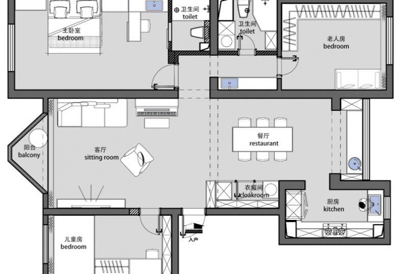 餐廳:在設(shè)計元素方面,設(shè)計師在原有入戶小空間中打破思維,將此區(qū)域變成一個雜物間,運用墻板和隱形門使整個面變?yōu)橐惑w,視覺上更為流暢,使用中更為方便。打造對于“家”這的想法:線條柔和,貼心與溫馨感漸次展露。在家具的選擇上,多采用木紋色調(diào),使自然的造型與紋理呈現(xiàn)于空間中,使人感受到濃濃的自然氣息。