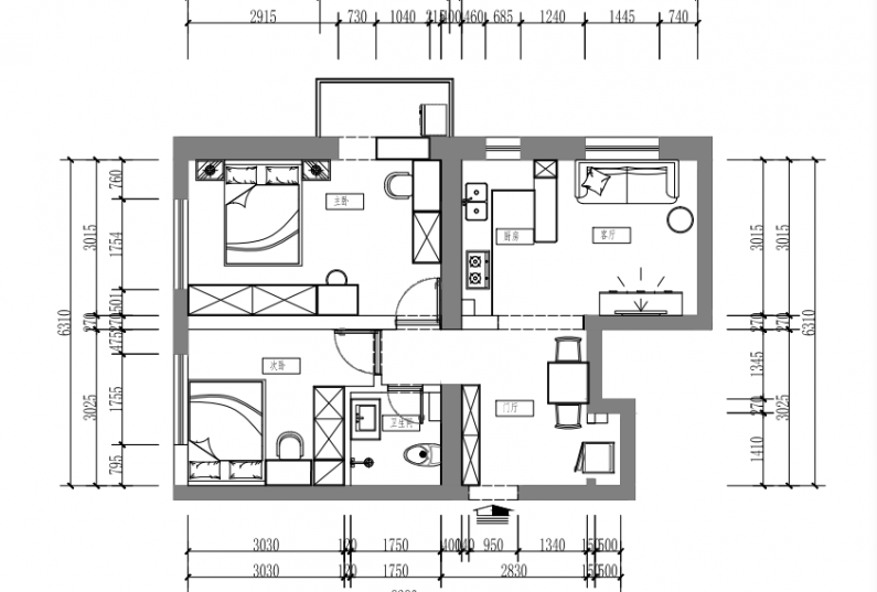 戶型:兩室一廳一廚一衛(wèi)