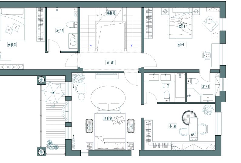 原衛(wèi)生間改造移位、書房與衣帽間合并后讓書房能夠有獨立采光,同時具有衣帽間功能,空間整理寬敞。