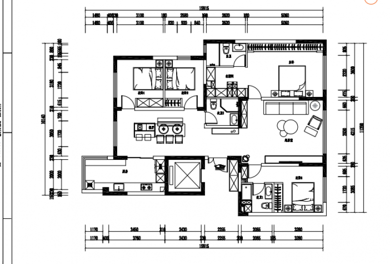 個臥室3個衛(wèi)生間1個客廳1個餐廳