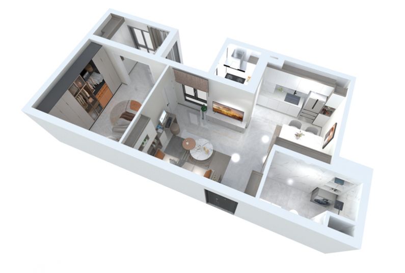 這個(gè)戶(hù)型中存在一些問(wèn)題,入戶(hù)沒(méi)有門(mén)廳鞋柜,餐廳區(qū)域采光不是很理想。對(duì)于這些地方在方案設(shè)計(jì)中進(jìn)行優(yōu)化調(diào)整,衛(wèi)生間的墻體內(nèi)縮,預(yù)留出鞋柜的位置,其次將廚房灶臺(tái)移動(dòng)到廚房陽(yáng)臺(tái),成為獨(dú)立的空間。拆除廚房和餐廳的墻體,使廚房過(guò)道空間釋放出來(lái),滿(mǎn)擺放六人位的餐桌。