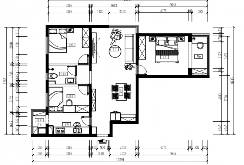 | 樓盤名稱:吉祥花園 | 案例風(fēng)格:現(xiàn)代 | 案例戶型:三居/四居 |