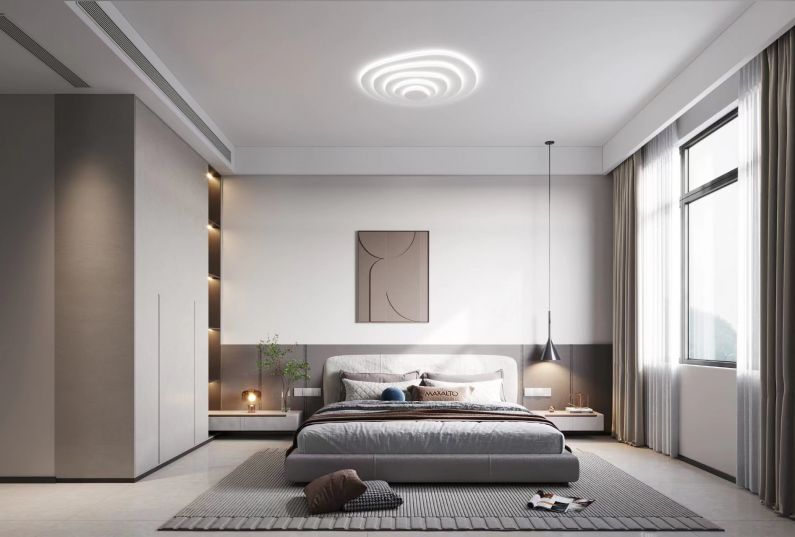 二層主臥整體色調(diào)白色與淺木色相得益彰,讓心情變的更加放松是臥室不變的家居屬性