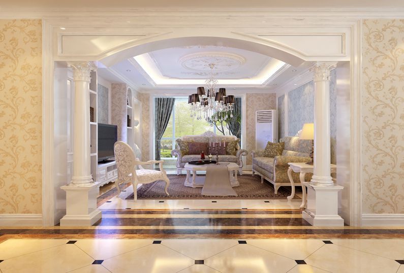 在風(fēng)格的設(shè)計(jì)上摒棄繁復(fù)的元素,多以簡潔的造型、高明度米黃色壁紙渲染整個空間。在整體的搭配上,實(shí)木簡歐家具和柱式形式即弱化了梁祝的局促感又增強(qiáng)了功能分區(qū)的美感,半開放式的廚房,餐廳起居連貫舒適。