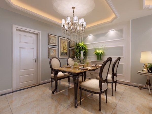 浪漫歐式風(fēng)情空間上則以實(shí)用明亮為主。以白色和米黃色為主調(diào),打造一個(gè)寧靜的空間環(huán)境,水晶燈烘托潔凈明亮的氛圍,綠色點(diǎn)綴,活躍空間氣氛。