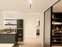 改造后的入戶玄關,即有了充足的收納空間,又讓整個入戶空間顯得豁然開朗。入戶沒有做地板波導線,就是利用灰色的柔光瓷磚通鋪,與白色鞋柜和白色的空間形成一種對比感,讓空間干凈而整潔。寬敞明亮的餐廚一體化空間。 【更多】